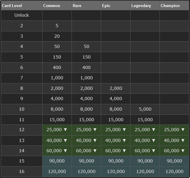 Co najważniejsze dla większości graczy: zmniejszono wymagania dotyczące kart i złota na średnich poziomach. Ma to sprawić, że awansowanie będzie płynniejsze i bardziej naturalne. Od teraz ulepszanie ma się skupiać na podstawowych zasobach: Kartach, Złocie i Dzikich Kartach.